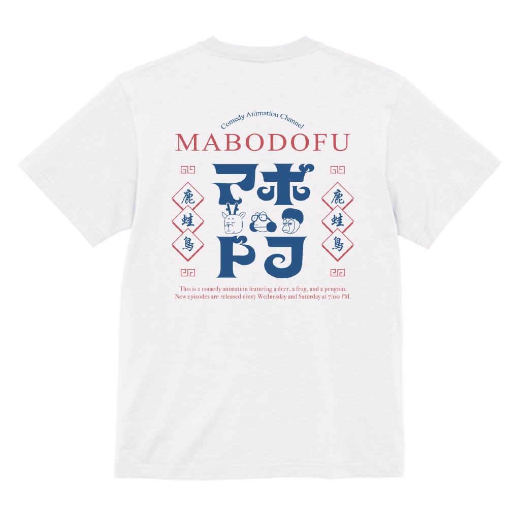 中華風TシャツA(ホワイト / ブルーロゴ)